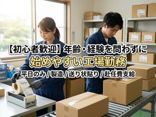 【年齢・経験不問】 初めての方大歓迎 始めやすい工場勤務 未経験者歓迎 平日のみ 赴任費支給【正社員】