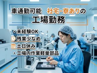 【工場内での軽作業スタッフ】人とかかわらないカンタン軽作業 車通勤可能 社宅・寮ありの工場勤務|未経験OK 残業少なめ 土日休み【正社員】