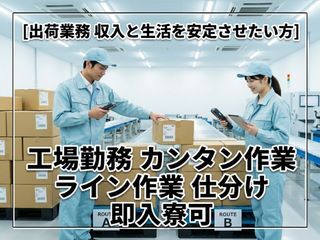 【梱包スタッフ】カンタン出荷業務 負担少なく収入と生活を安定させたい方|工場勤務 簡単ライン作業 即入寮可【正社員】