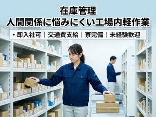 【即入社 住み込み可】在庫管理のカンタン軽作業 人間関係に悩みにくい工場勤務 即入社可 交通費支給 寮完備 未経験歓迎【正社員】